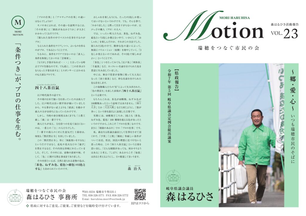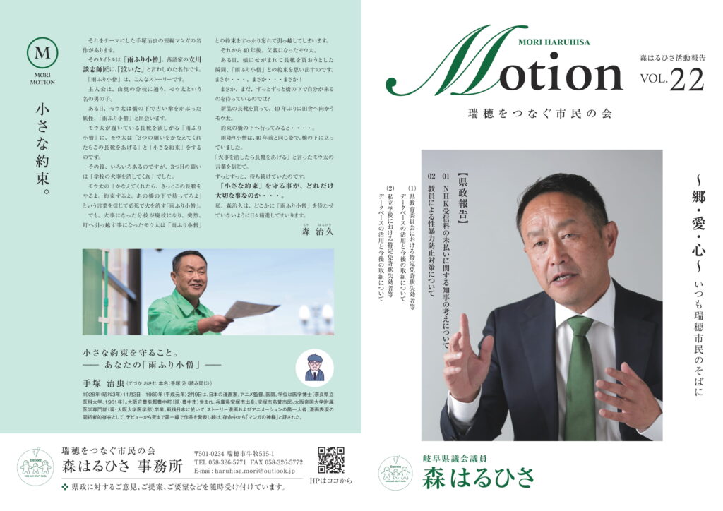 瑞穂を“愛する心” 私が何故、政治を志したか。それは、政治というものをもっと身近な存在にしたい、そして、努力したものが、必ずむくわれ、公平で公正な社会であってほしいと願うところにあります。